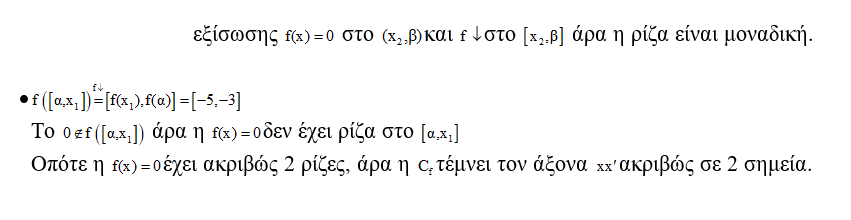 ii) Μια συνεχής συνάρτηση f διατηρεί πρόσημο σε καθένα από τα διαστήματα στα οποία οι ρίζες της f χωρίζουν το πεδίο ορισμού της.
