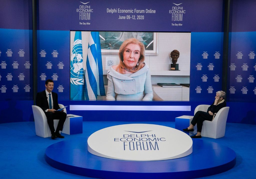 Στη συζήτηση που ακολούθησε αμέσως μετά με τίτλο Θερμοπύλες και Σαλαμίνα: Ο Θρίαμβος της Θέλησης, η Μαριάννα B. Βαρδινογιάννη, Πρέσβης Καλής Θελήσεως της UNESCO, Πρόεδρος της Τιμητικής Κοσμητείας του Επετειακού Έτους «Θερμοπύλες-Σαλαμίνα 2020” επεσήμανε πως η πανδημία άλλαξε τη ματιά μας στον κόσμο, έκανε τα πράγματα ρευστά και αβέβαια. Η Μαριάννα Βαρδινογιάννη μιλώντας για το Οικονομικό Φόρουμ των Δελφών τόνισε πως θα συμβάλλει στην προσπάθεια ανασύνταξης του μέλλοντος, ενώ δεν έχει να ζηλέψει σε τίποτα από τα Φόρουμ του εξωτερικού και αποπνέει το μοναδικό πνεύμα των Δελφών.