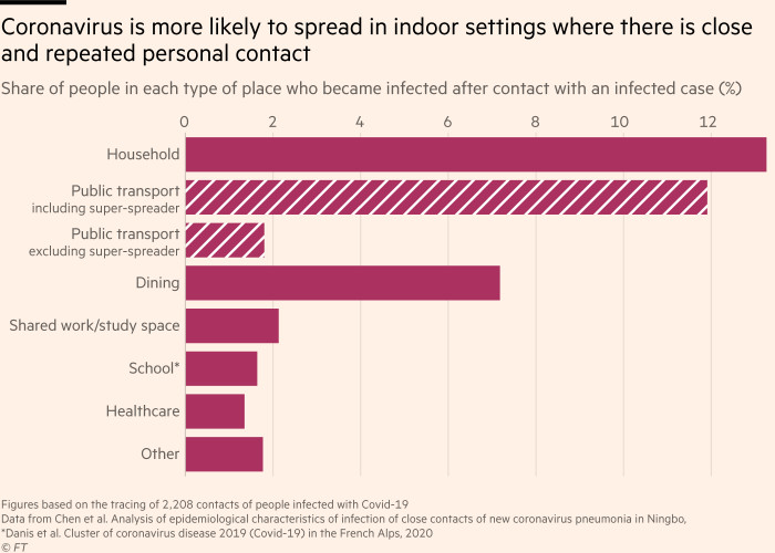 Τα παράδοξο της διασποράς είναι ότι οι περισσότερες δευτερογενείς λοιμώξεις παρατηρήθηκαν σε εσωτερικούς χώρους παρότι μόνο το 20% των συναναστροφών συμβαίνει σε εσωτερικούς χώρους.