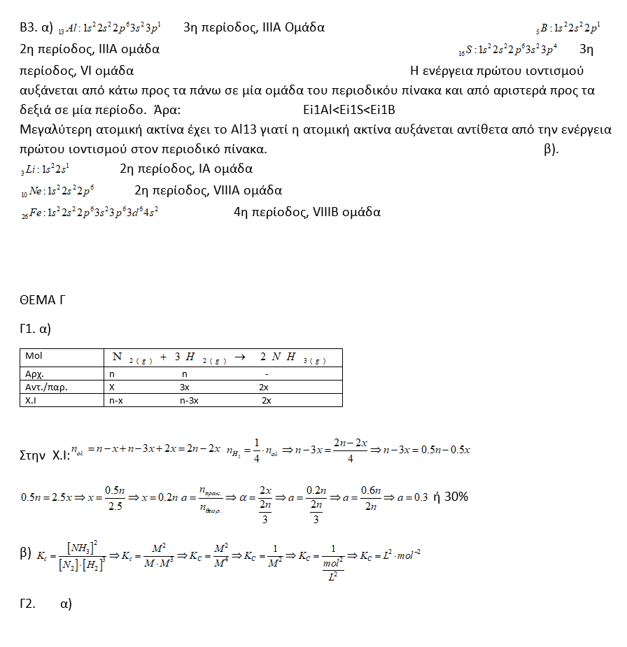 Α1. Για το άτομο του υδρογόνου τα τροχιακά 2s και 2p έχουν