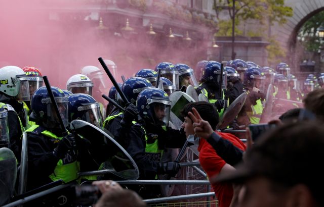 Η αστυνομία δήλωσε σήμερα πως ορισμένοι έφεραν όπλα στα συλλαλητήρια στο Λονδίνο. Επέβαλαν περιορισμούς στη διαδρομή και στις δύο ομάδες και δήλωσαν ότι οι συγκεντρώσεις πρέπει να λήξουν έως τις 19:00.