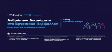 Διεθνές Διαδικτυακό Συνέδριο για τα «Ανθρώπινα Δικαιώματα στο Εργασιακό Περιβάλλον» (“Human Rights in Business”) διοργανώνουν την Πέμπτη, 25 Ιουνίου 2020, οι Γενικές Γραμματείες Διεθνών Οικονομικών Σχέσεων & Εξωστρέφειας του Υπουργείου Εξωτερικών, Διαφάνειας και Ανθρωπίνων Δικαιωμάτων του Υπουργείου Δικαιοσύνης και Οικογενειακής Πολιτικής και Ισότητας των Φύλων του Υπουργείου Εργασίας και Κοινωνικών Υποθέσεων.