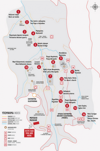 Η αρχαία Ελεύθερνα απλωνόταν στην ευρύτερη περιοχή, με κύριους αστικούς πυρήνες στους λόφους Πυργί και Νησί.