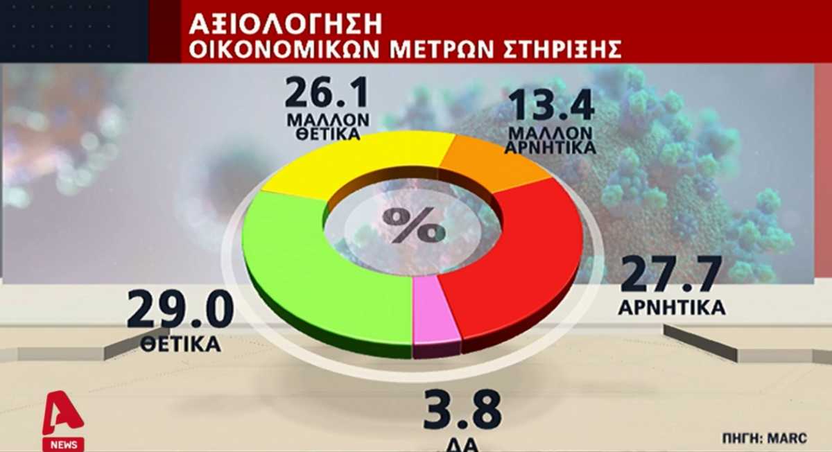Το 55,1% κρίνει θετικά και μάλλον θετικά τα μέτρα της κυβέρνησης για τη στήριξη της οικονομίας, ενώ το 41,1% τα κρίνει αρνητικά