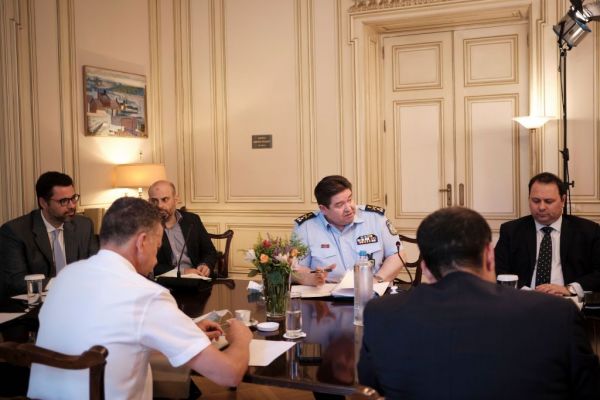 Στη σύσκεψη μετείχαν ο Υπουργός Προστασίας του Πολίτη Μιχάλης Χρυσοχοΐδης, ο Υπουργός Εσωτερικών Τάκης Θεοδωρικάκος, ο Υπουργός Ναυτιλίας και Νησιωτικής Πολιτικής Γιάννης Πλακιωτάκης, ο Υπουργός Επικρατείας Γιώργος Γεραπετρίτης, ο Υφυπουργός Ανάπτυξης Νίκος Παπαθανάσης, ο Υφυπουργός Προστασίας του Πολίτη αρμόδιος για την Πολιτική Προστασία και τη Διαχείριση Κρίσεων Νίκος Χαρδαλιάς, ο Υφυπουργός παρά τω Πρωθυπουργώ αρμόδιος για το Συντονισμό του Κυβερνητικού Έργου Άκης Σκέρτσος, ο Υφυπουργός παρά τω Πρωθυπουργώ και Κυβερνητικός Εκπρόσωπος Στέλιος Πέτσας, ο Γενικός Γραμματέας του Πρωθυπουργού Γρηγόρης Δημητριάδης, ο Γενικός Γραμματέας Εμπορίου και Προστασίας Καταναλωτή Παναγιώτης Σταμπουλίδης, ο Γενικός Γραμματέας Συντονισμού Εσωτερικών Πολιτικών Θανάσης Κοντογεώργης, ο Διοικητής της Εθνικής Αρχής Διαφάνειας Άγγελος Μπίνης, ο Αρχηγός της Ελληνικής Αστυνομίας Μιχαήλ Καραμαλάκης και ο Αρχηγός του Λιμενικού Σώματος Θεόδωρος Κλιάρης.