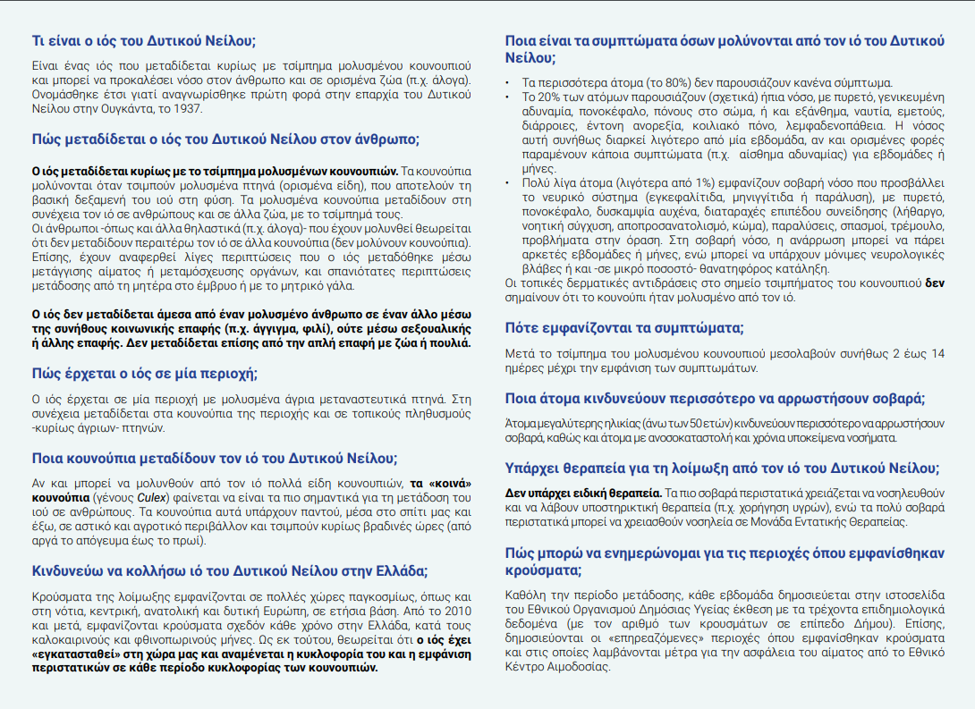 Μαθαίνω και προφυλάσσομαι από τον ιό του Δυτικού Νείλου