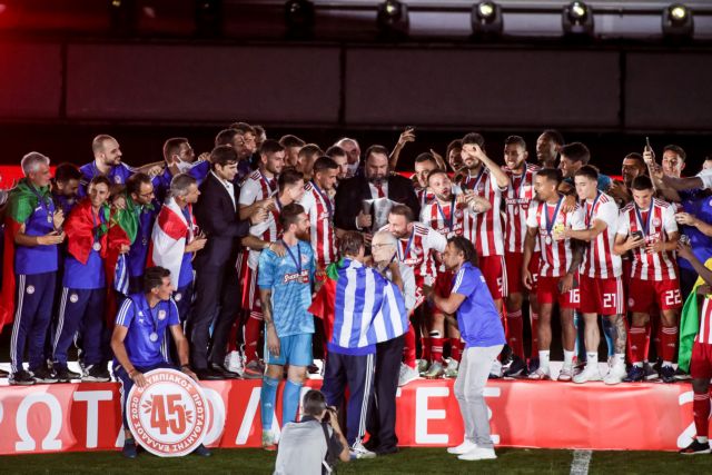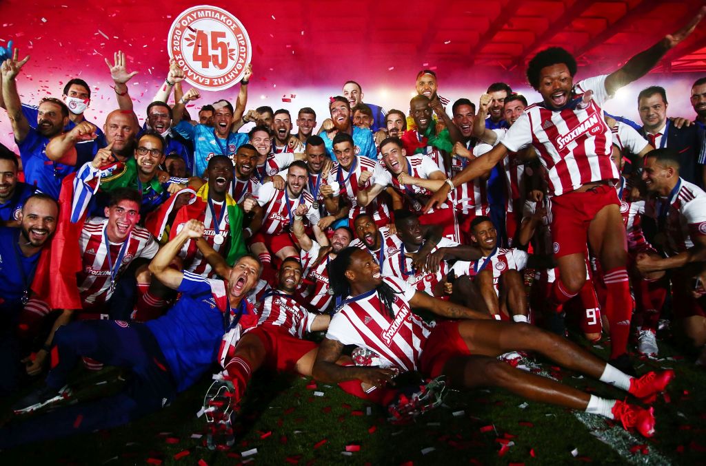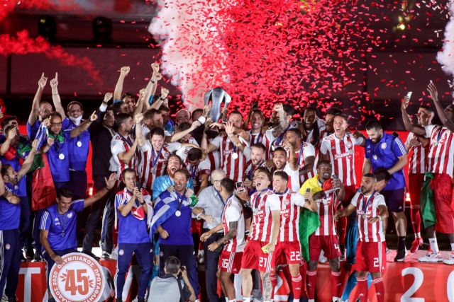 Ο Ολυμπιακός πανηγυρίζει για το 45ο πρωτάθλημα της ιστορίας του.