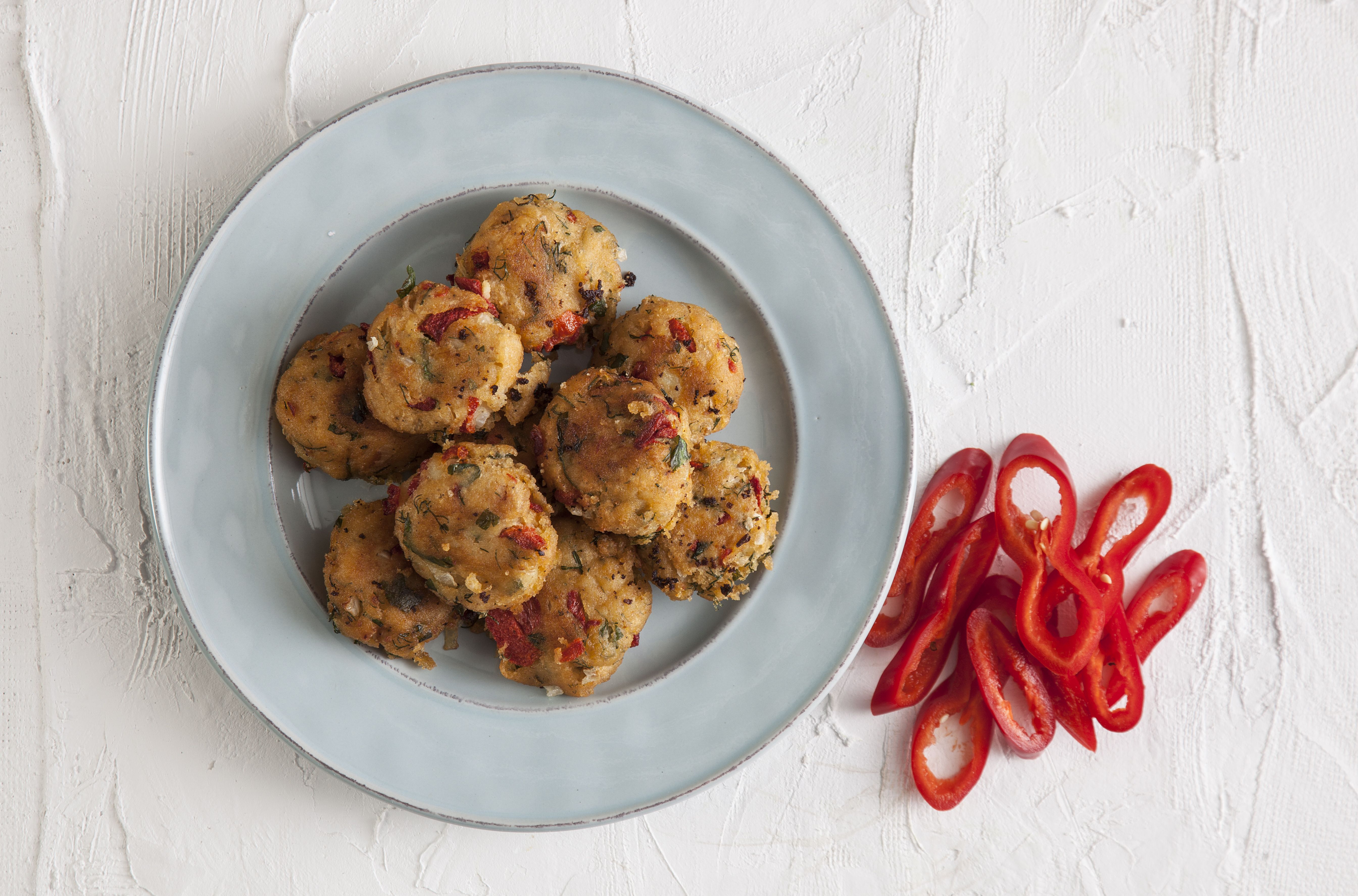 Σε άλλο μπολ χτυπάμε τα ασπράδια σε μαρέγκα (μπορούμε να το κάνουμε και με το μίξερ χειρός αν έχουμε). Ρίχνουμε τη μαρέγκα στο μείγμα και ζυμώνουμε «διπλώνοντας» τα υλικά μέχρι να ενωθούν καλά. Ιδανικά αφήνουμε στο ψυγείο από μία ώρα έως και μία νύχτα για να σφίξει το μείγμα. Πλάθουμε σε κεφτεδάκια των 20 γρ. το καθένα, τα περνάμε από το αλεύρι και τα τηγανίζουμε σε καυτό λάδι.