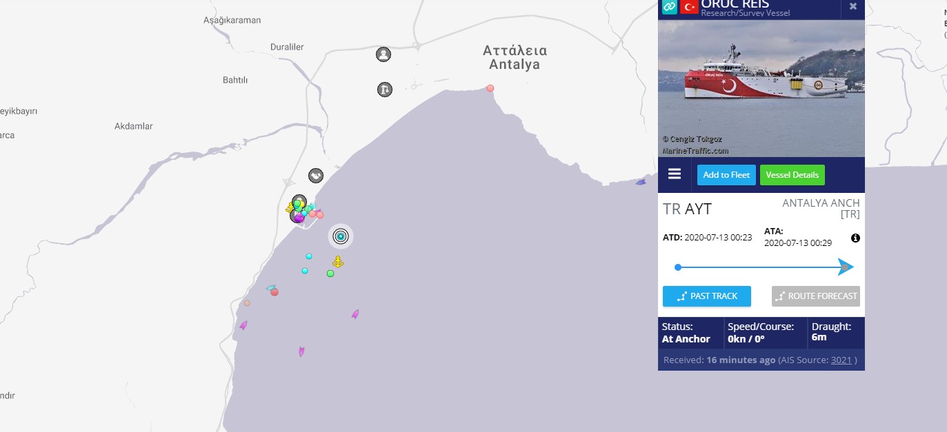 Αξίζει να σημειωθεί ότι από την Τρίτη, όταν εκδόθηκε η παράνομη τουρκική Navtex, έως και το βράδυ του Σαββάτου, το Oruc Reis παραμένει αγκυροβολημένο στο λιμάνι της Αττάλειας.