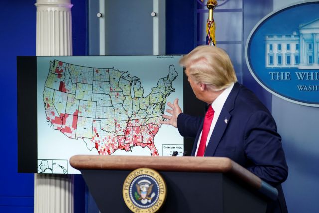 Οι Ηνωμένες Πολιτείες είναι η πλέον πληγείσα χώρα στον κόσμο με περισσότερα από 4,2 εκατομμύρια επιβεβαιωμένα κρούσματα της Covid-19 και σχεδόν 147.000 θανάτους. Έπειτα από μια ανάπαυλα τον Μάιο, η πανδημία άρχισε να εντείνεται ξανά, ειδικά στις νότιες και τις δυτικές πολιτείες, αναγκάζοντας πολλές μεταξύ αυτών να υπαναχωρήσουν ως προς τα μέτρα χαλάρωσης που είχαν αρχίσει.