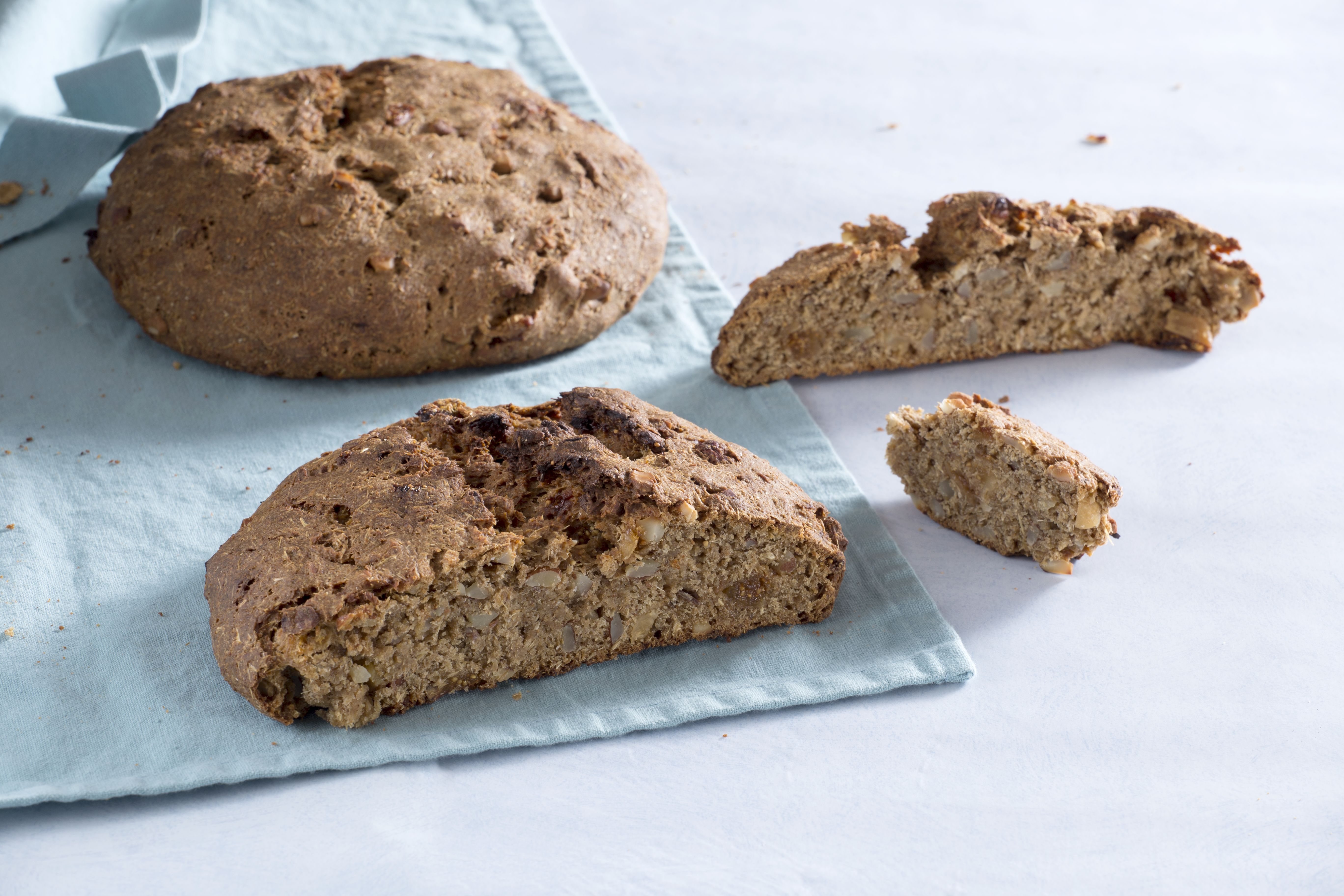 Προθερμαίνουμε τον φούρνο στους 200°C. Ραντίζουμε τα καρβέλια με λίγο νερό και τα ψήνουμε για 15 λεπτά. Χαμηλώνουμε στους 160°C και ψήνουμε για 40 λεπτά ακόμη. Βγάζουμε το ψωμί από τον φούρνο και αφήνουμε πάνω σε μια σχάρα να κρυώσει.
