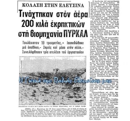 Τον Αύγουστο του 1997 είχε σημειωθεί έκρηξη στο εργοστάσιο της ΠΥΡΚΑΛ στο Λαύριο με αποτέλεσμα τον θάνατο ενός ατόμου και τον τραυματισμό πολλών άλλων.