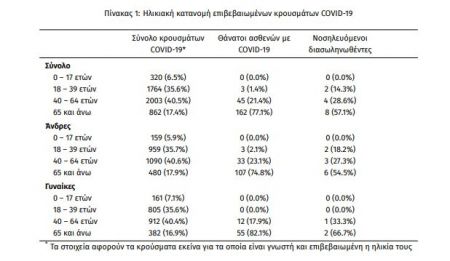 Η διάμεση ηλικία των θανόντων συμπολιτών μας ήταν τα 76 έτη και το 95.7% είχε κάποιο υποκείμενο νόσημα ή/και ηλικία 70 ετών και άνω.