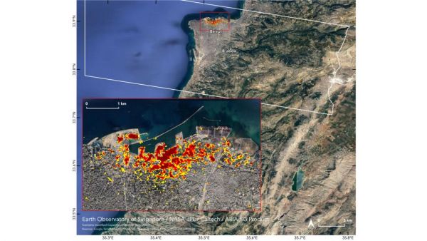 Συλλέγοντας υλικό από δορυφορικά δεδομένα, η NASA δείχνει μέσω της παρακάτω φωτογραφίας την έκταση της καταστροφής, μετά από την τεράστια έκρηξη που συνέβη στις 4 Αυγούστου 2020 στη Βηρυτό του Λιβάνου.