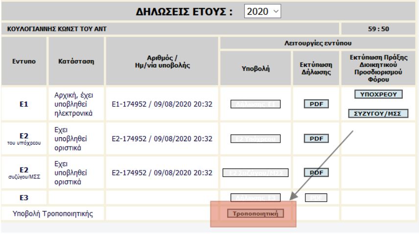Η υποβολή της τροποποιητικής δήλωσης για τα φυσικά πρόσωπα γίνεται με την γνωστή διαδικασία και συγκεκριμένα με 4 κλικ.