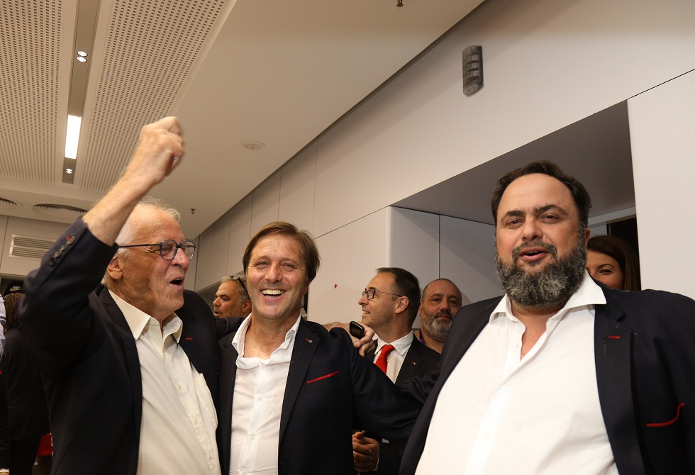 Με τον Σάββα Θεοδωρίδη, συγκινημένος να απαντάει: «Δεν το περίμενα. Δεν περίμενα να αφιερώσει το πρωτάθλημα σε εμένα. Είναι πράγματα εσωτερικά που είχαν γίνει και δεν ξέρει ο κόσμος. Έδειξε πόσο κύριος είναι και τι άντρας είναι. Με συγκίνησε. Αλλά κι εγώ 9 χρόνια δίπλα του τον έχω στηρίξει και θα τον στηρίζω μέχρι τέλους. Με συγκίνησε ο Βαγγέλης και με έκανε να νιώσω αιώνιος έφηβος! Και είμαι ευγνώμων που έγινα Ολυμπιακός».