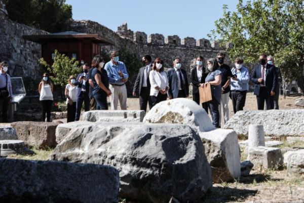 Αρχικά επισκέφτηκε το Κάστρο της Μυτιλήνης και ξεναγήθηκε στο εμβληματικό αυτό μνημείο της πόλης, στα συνεχιζόμενα έργα αναστήλωσης των τειχών του και στις ανασκαφές. Στη συνέχεια περπάτησε στην παραδοσιακή αγορά, έκανε μια στάση για καφέ στο υπεραιωνόβιο καφενείο της πόλης το «Πανελλήνιον» και τέλος επισκέφτηκε το παραδοσιακό Δημαρχείο όπου συναντήθηκε με εκπροσώπους φορέων και των τοπικών αρχών.