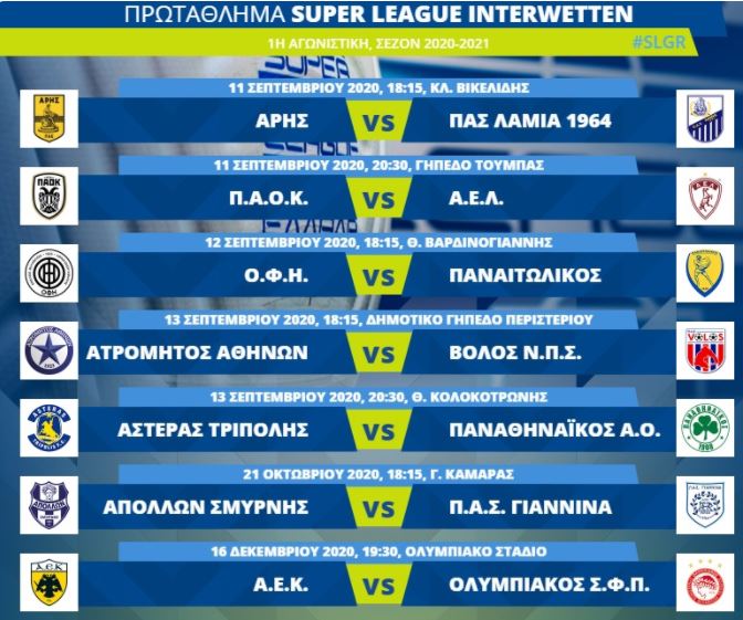 Αναλυτικά οι ημερομηνίες και οι ώρες της 1ης αγωνιστικής: