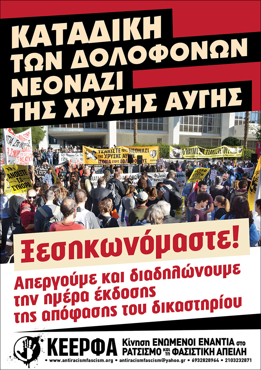 Απαιτούμε την παραδειγματική καταδίκη των δολοφόνων νεοναζί της Χρυσής Αυγής με μια απόφαση σταθμό! Η θέση των φασιστών δολοφόνων είναι μόνο στη φυλακή!