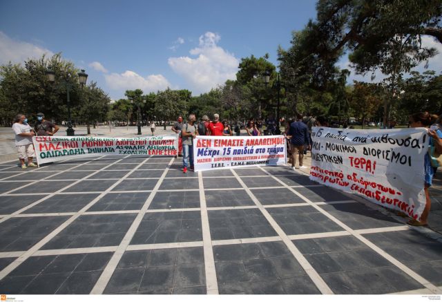 Οι διαδηλωτές τόνισαν ότι «δεν θα δεχτούμε εκπαιδευτικούς λάστιχο, αναλώσιμους και χωρίς δικαιώματα, σε σχολεία χωρίς υγιεινή και ασφάλεια», ενώ ζήτησαν μαζικούς διορισμούς εκπαιδευτικών.