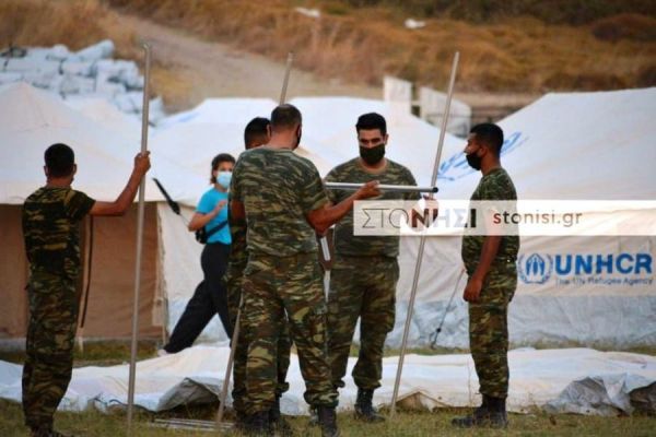 Από το πρωί εργάζονται εκεί ακατάπαυστα, στελέχη των Ενόπλων Δυνάμεων και εργαζόμενοι στο πρώην ΚΥΤ, ενώ όπως έγινε γνωστό, η δομή θα έχει προσωρινό χαρακτήρα, θα αφορά δε 3.000 από αυτούς που έμεναν στον καμένο καταυλισμό της.