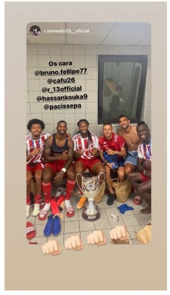 Μάλιστα, ο έμπειρος οπισθοφύλακας πόζαρε αγκαλιά με το τρόπαιο και με τους νέους του συμπαίκτες Σεμέδο, Μπρούνο, Καφού, Χασάν και Σισέ.
