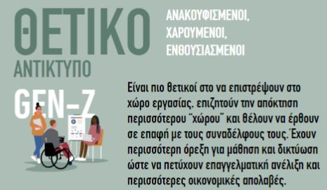 – Gen Z – Millennials: Οι Gen Z είναι πιο πρόθυμοι να επιστρέψουν στον χώρο εργασίας για να αναπτύξουν την καριέρα τους και να κοινωνικοποιηθούν περισσότερο (51%), ενώ οι Millennials είναι λιγότερο θετικοί (38%).