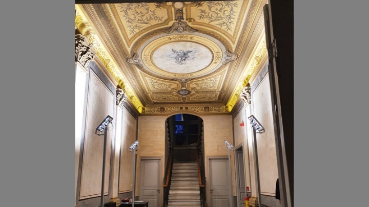 Καθώς ο επισκέπτης διαβαίνει την κεντρική είσοδο του κτιρίου νιώθει δέος και θαυμασμό για τον πλούσιο αρχιτεκτονικό διάκοσμο του κτιρίου, τις εντυπωσιακές τοιχογραφίες και οροφογραφίες, τα μωσαϊκά δάπεδα και τα υαλοστάσια.