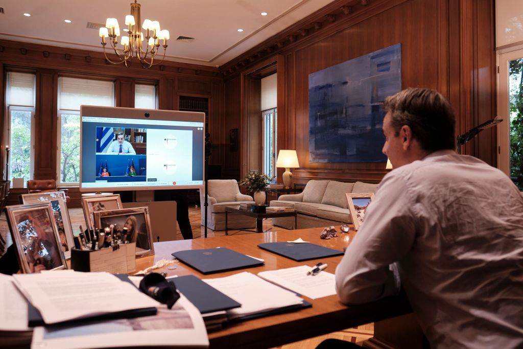 Ο Πρωθυπουργός Κυριάκος Μητσοτάκης είχε σήμερα τηλεδιάσκεψη με την Πρόεδρο της Ευρωπαϊκής Επιτροπής Ούρσουλα Φον Ντερ Λάιεν και την Καγκελάριο της Γερμανίας, Άγκελα Μέρκελ.