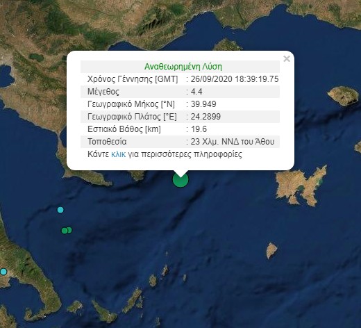 Όπως αναφέρεται, σημειώθηκε σε περιοχή 23 χιλιόμετρα νότια – νοτιοδυτικά του Άθου.