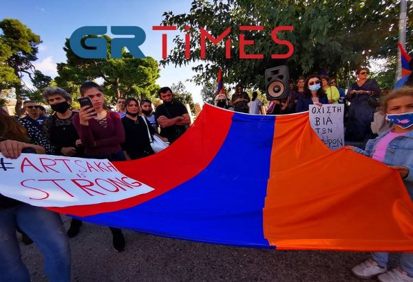 Συγκέντρωση διαμαρτυρίας, για τα τεκταινόμενα στο Ναγκόρνο – Καραμπάχ, πραγματοποιούν αυτή την ώρα μέλη της Αρμενικής κοινότητας, στην πλατεία Λευκού Πύργου, στη Θεσσαλονίκη.