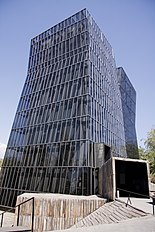 Οι Σιαμαίοι Πύργοι στο Καθολικό Πανεπιστήμιο του Σαντιάγο της Χιλής, σε σχέδιο Αλεχάντρο Αραβένα