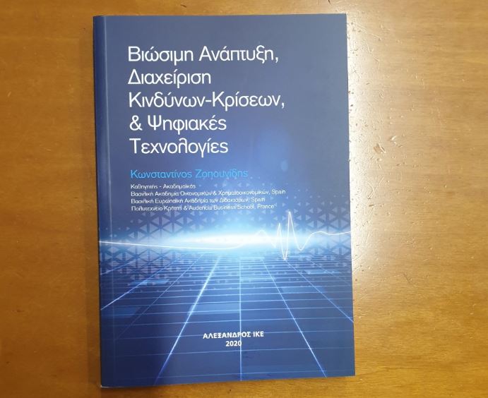 Στη βάση αυτή κινείται το νέο σύγγραμμα με τίτλο: Οικονομία, Βιώσιμη Ανάπτυξη, Διαχείριση Κινδύνων-Κρίσεων, & Ψηφιακές Τεχνολογίες, που επιμελείται ο διακεκριμένος Ακαδημαϊκός του Πολυτεχνείου Κρήτης, Καθ. Κωνσταντίνος Ζοπουνίδης.