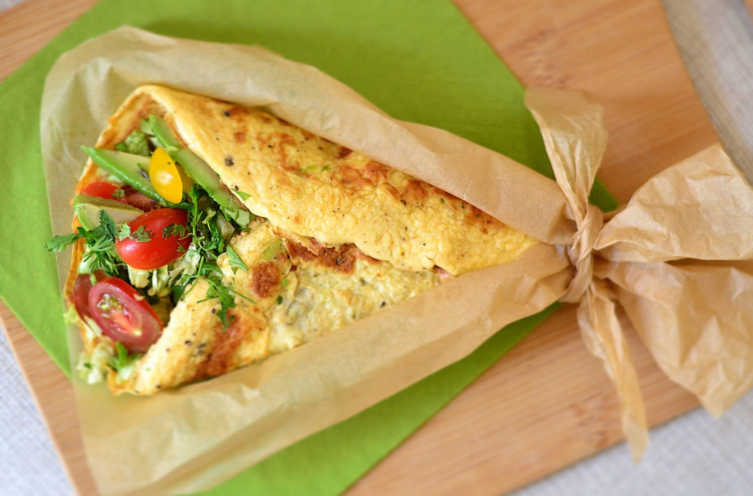 Στη μέση της ομελέτας απλώνουμε το τυρί κρέμα, βάζουμε πάνω τα ντοματίνια κομμένα στη μέση, το αβοκάντο σε φέτες, το μαρούλι ψιλοκομμένο (και ό,τι άλλα υλικά θέλουμε να χρησιμοποιήσουμε σαν γέμιση). Γαρνίρουμε με φρέσκο ψιλοκομμένο κόλιαντρο (προαιρετικά) και με πικάντικη σάλτσα της αρεσκείας μας.
