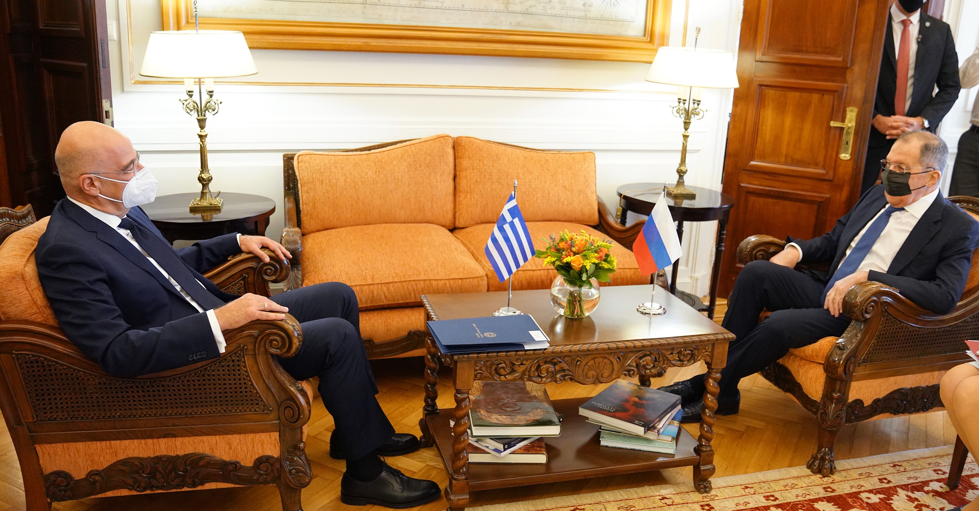Ο υπουργός Εξωτερικών Νίκος Δένδιας  με τον υπουργό Εξωτερικών της Ρωσίας Σεργκέι Λαβρόφ