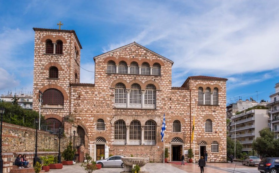 Ο μεγαλοπρεπής ναός του πολιούχου και προστάτη της Θεσσαλονίκης, ένα από τα λαμπρότερα χριστιανικά αρχιτεκτονικά μνημεία, είναι μια πεντάκλιτη βασιλική με αμφικλινή στέγη, νάρθηκα, εγκάρσιο κλίτος και υπερώα επάνω από όλα τα κλίτη και το νάρθηκα.