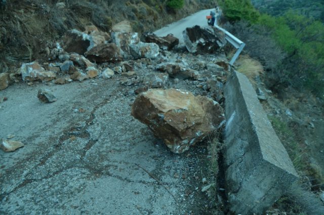 Η αποκόλληση βράχων μετά τον ισχυρότατο σεισμό που συγκλόνισε τη Σάμο δημιούργησε προβλήματα σε πολλά σημεία του οδικού δικτύου της Ικαρίας.