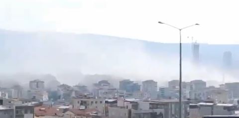 Βίντεο δείχνουν σύννεφα σκόνης πάνω από τη Σμύρνη και εκτιμάται πως έχουν καταρρεύσει κτίρια.