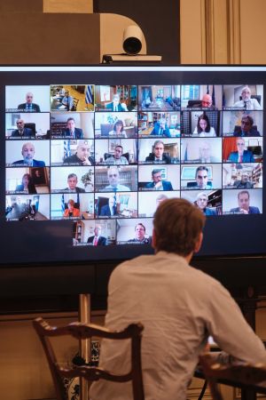 Από την πλευρά της κυβέρνησης στην τηλεδιάσκεψη συμμετείχαν επίσης ο Υπουργός Προστασίας του Πολίτη Μιχάλης Χρυσοχοΐδης, η Υπουργός Παιδείας και Θρησκευμάτων Νίκη Κεραμέως, ο Υπουργός Δικαιοσύνης Κωνσταντίνος Τσιάρας, ο Υπουργός Επικρατείας Γιώργος Γεραπετρίτης, ο Υφυπουργός Παιδείας & Θρησκευμάτων αρμόδιος για θέματα Ανώτατης Εκπαίδευσης Βασίλης Διγαλάκης, ο Υφυπουργός παρά τω Πρωθυπουργώ αρμόδιος για τον Συντονισμό του Κυβερνητικού Έργου Άκης Σκέρτσος, ο Υφυπουργός παρά τω Πρωθυπουργώ και Κυβερνητικός Εκπρόσωπος Στέλιος Πέτσας, ο Γενικός Γραμματέας του Πρωθυπουργού Γρηγόρης Δημητριάδης, ο Γενικός Γραμματέας Ανώτατης Εκπαίδευσης, Απόστολος Δημητρόπουλος, ο Διευθυντής του Οικονομικού Γραφείου του Πρωθυπουργού Αλέξης Πατέλης και η Αναπληρώτρια Κυβερνητική Εκπρόσωπος, Αριστοτελία Πελώνη. Στην τηλεδιάσκεψη μετείχε επίσης ο Πρόεδρος της Εθνικής Αρχής Ανώτατης Εκπαίδευσης (ΕΘΑΑΕ), Περικλής Μήτκας.