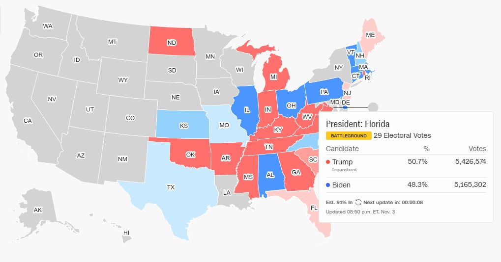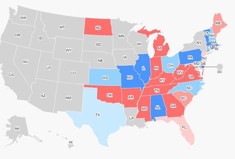 Αναλυτικά οι πολιτείες που κερδίζει ο κάθε υποψήφιος, σύμφωνα με τις προβλέψεις του CNN: