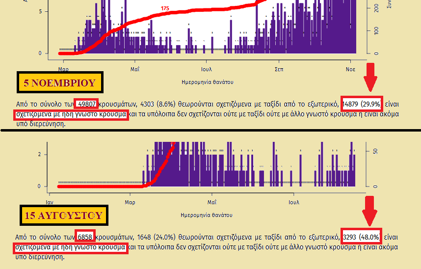 Σύμφωνα με την χθεσινή ανακοίνωση του ΕΟΔΥ τα κρούσματα που ήταν γνωστής συρροής κι αλληλένδετα μεταξύ τους ήταν της τάξης του 29,1% (με τον υπολογισμό να γίνεται ωστόσο από την αρχή της πανδημίας) όταν στις 15 Αυγούστου αυτό το ποσοστό προσέγγιζε το 50%.