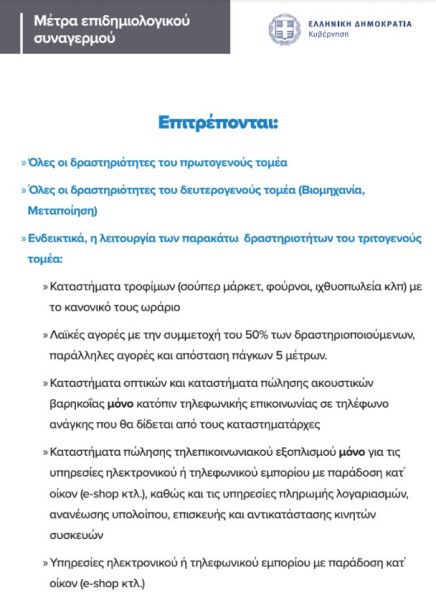 - Επιτρέπονται οι υπηρεσίες ηλεκτρονικού ή τηλεφωνικού εμπορίου με παράδοση κατ΄ οίκον (e-shop κτλ.)