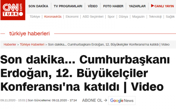 Κατά την ομιλία του στο Συνέδριο των Πρέσβεων στην Άγκυρα, ο Ερντογάν προειδοποίησε για μία ακόμη φορά πως η Τουρκία, δεν πρόκειται να κάνει πίσω στο θέμα των ενεργειακών πόρων της Ανατολικής Μεσογείου, εμφανιζόμενος ωστόσο υπέρ του διαλόγου με την Ελλάδα και άλλες χώρες της περιοχής.