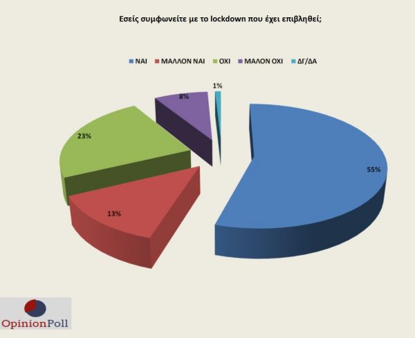 – Υπάρχει μια πολύ μεγάλη συμφωνία υπέρ της απόφασης επιβολής lock down. To 68% συμφωνεί με την απόφαση αυτή έναντι ενός 31%.