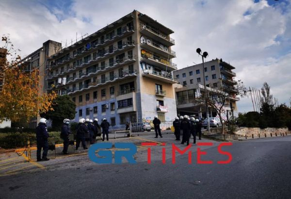 Είναι χαρακτηριστικό πώς στην οδό Εγνατία στην Αγίου Δημητρίου στην 3η Σεπτεμβρίου και στους γύρω δρόμους αστυνομικοί από διάφορες υπηρεσίες ελέγχουν τις μετακινήσεις πολιτών και επιτρέπουν την προσέλευση προς το ΑΠΘ μόνο σε όσους εργάζονται στο ίδρυμα η θέλουν να πάνε στο νοσοκομείο ΑΧΕΠΑ το οποίο επίσης φυλάσσεται σε πολύ κοντινή απόσταση.
