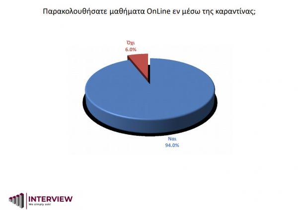 Ειδικότερα, το 94% των ερωτώμενων φοιτητών δηλώνει πως παρακολούθησε on-Line μαθήματα εν μέσω της καραντίνας. Η πλατφόρμα Zoom συγκεντρώνει την προτίμηση του 84% των φοιτητών, ενώ ακολουθεί το Skype for Business με 30%, το Google Meet με 12%, το Microsoft Teams με 10% κα.