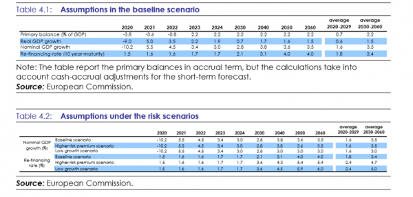 Σημειώνεται πως η Κομισιόν προβλέπει ύφεση 9% το 2020 και ανάκαμψη 5% το 2021, ενώ σχετικά με το χρέος δείχνει αύξηση από 180,5% του ΑΕΠ το 2019 σε πάνω από 207% το 2020. Το οικονομικό επιτελείο με τα αναθεωρημένα στοιχεία ανα χείρας οδεύει στην κατάθεση του προϋπολογισμού την Παρασκευή όπου μετά το νέο lockdown τείνει σε διψήφια νούμερα ως προς την ύφεση και με αυξήσεις στην πορεία του ελλείμματος.