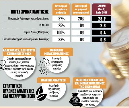 Μεγάλη ευκαιρία για να αποκολληθεί η χώρα από την οικονομική κρίση που έχει προκαλέσει ο κορωνοϊός και να περάσει η Ελλάδα στην ψηφιακή εποχή και στην πράσινη ανάπτυξη παρέχουν τα 31,9 δισ. ευρώ που θα φτάσουν στη χώρα μας από τα ευρωπαϊκά ταμεία τα επόμενα πέντε χρόνια.
