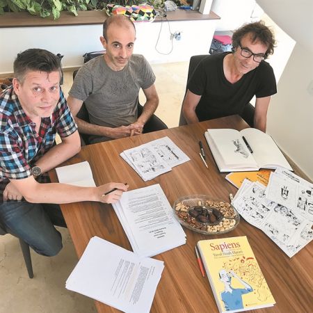 «Το κόμικ ήταν η πιο ευχάριστη δουλειά που έκανα ποτέ μου. Σκοπός μας ήταν να προσελκύσουμε ανθρώπους που συνήθως δεν διαβάζουν επιστημονικά βιβλία όπως το Sapiens. Για να το πετύχουμε συνεργάστηκα με δύο εξαιρετικά ταλαντούχους καλλιτέχνες, τον Ντάνιελ Καζανάβε και τον Ντέιβιντ Βαντερμιούλεν, και όλοι μαζί αποφασίσαμε να αφήσουμε κατά μέρος τις ακαδημαϊκές συμβάσεις και να κάνουμε ένα ταξίδι στην άγρια μεριά της Ιστορίας. Το τωρινό βιβλίο δεν είναι απλώς μια εικονογραφημένη εκδοχή του παλιού. Είναι μια καινοτόμος εξερεύνηση του τι σημαίνει η Ιστορία – και του τι σημαίνει η αφήγησή της. Στο παρελθόν οι εικόνες έπαιζαν μείζονα ρόλο στη μετάδοση της ιστορικής πληροφορίας. Αρκεί να σκεφτείτε την ταπισερί της Μπαγέ. Οταν κανείς προσθέτει την οπτική διάσταση στην αφήγησή του, τίθεται ένα πλήθος ερωτημάτων που απαιτούν ευφάνταστες απαντήσεις. Γνωρίζουμε, για παράδειγμα, ότι κάποιοι Sapiens διασταυρώθηκαν με τους Νεάντερταλ. Το γνωρίζουμε ως γενικό δεδομένο, σε αυτή την κάπως αφηρημένη μορφή. Σχεδιάζοντάς το, όμως, πρέπει να είναι κανείς ακριβής, Σχεδιάζεις έναν άνδρα Sapiens με μια γυναίκα Νεάντερταλ; Μια γυναίκα Sapiens με έναν άνδρα Νεάντερταλ; Ενα γκέι ζευγάρι; Και ποιο είναι το χρώμα της επιδερμίδας τους; Οι Sapiens ήρθαν από την Αφρική, ενώ πατρίδα των Νεάντερταλ ήταν η Ευρώπη. Σημαίνει αυτό ότι το χρώμα του δέρματος των Sapiens ήταν σκούρο ενώ των Νεάντερταλ πιο ανοιχτό; Σε ένα κόμικ οφείλει να απαντήσει κανείς σε όλα αυτά τα ερωτήματα».