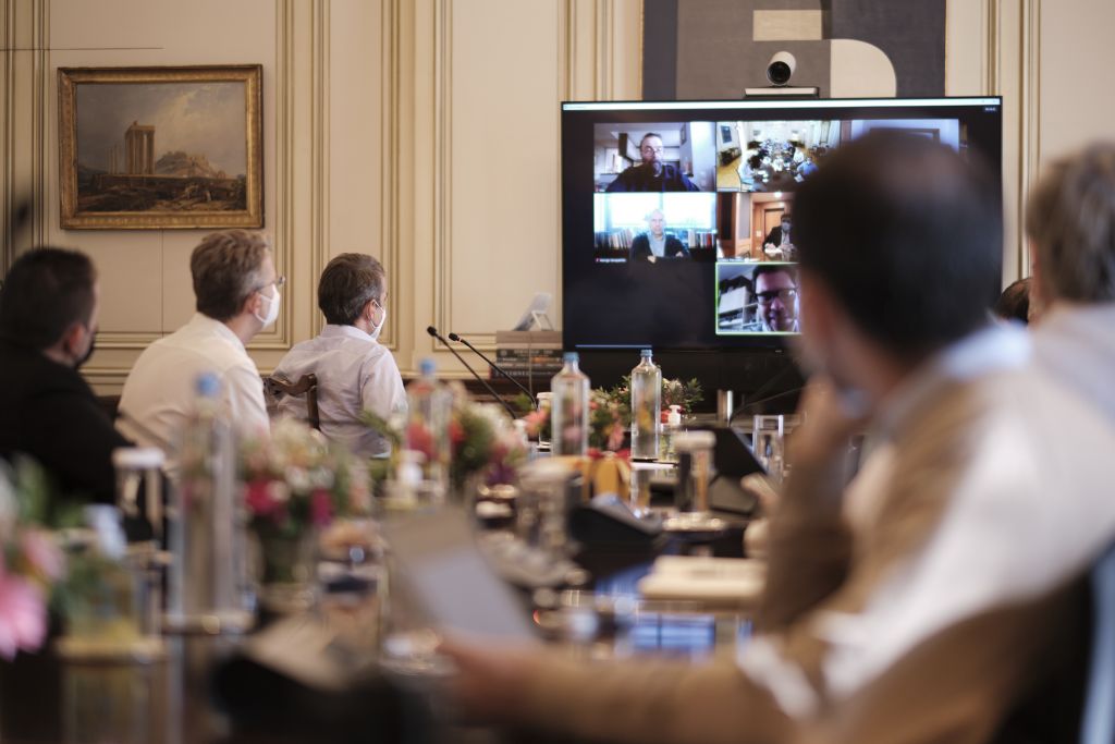 Στην τηλεδιάσκεψη συμμετείχαν ο Υπουργός Υγείας, Βασίλης Κικίλιας, ο Υπουργός Επικρατείας και Ψηφιακής Διακυβέρνησης, Κυριάκος Πιερρακάκης, ο Υπουργός Επικρατείας, Γιώργος Γεραπετρίτης, ο Υφυπουργός Υγείας, Βασίλης Κοντοζαμάνης, ο Υφυπουργός παρά τω Πρωθυπουργώ, αρμόδιος για το Συντονισμό του Κυβερνητικού Έργου, Άκης Σκέρτσος, ο Υφυπουργός παρά τω Πρωθυπουργώ και Κυβερνητικός Εκπρόσωπος Στέλιος Πέτσας, ο Γενικός Γραμματέας του Πρωθυπουργού, Γρηγόρης Δημητριάδης, ο Γενικός Γραμματέας Δημόσιας Υγείας, Παναγιώτης Πρεζεράκος, ο Γενικός Γραμματέας Πρωτοβάθμιας Φροντίδας Υγείας, Μάριος Θεμιστοκλέους, ο Γενικός Γραμματέας Συντονισμού, Θανάσης Κοντογεώργης, ο Γενικός Γραμματέας της Βουλής, Γιώργος Μυλωνάκης και ο Διευθυντής του Γραφείου του Πρωθυπουργού στη Βουλή, Μιχάλης Μπεκίρης.